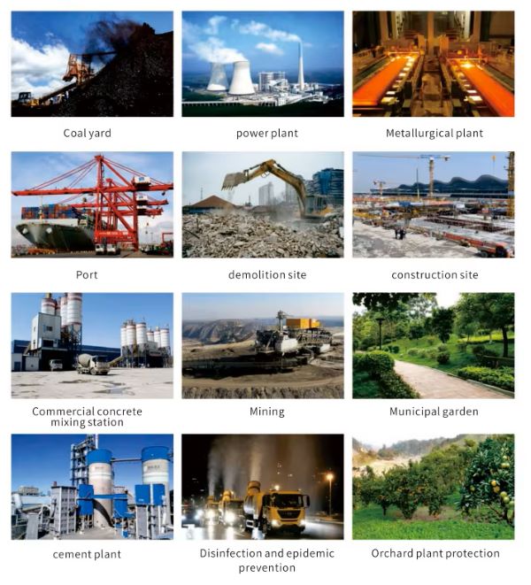 Princip rada topa za maglu je da koristi vodenu pumpu visokog pritiska i fine raspršivače za raspršivanje vode, a zatim koristi brzi protok vazduha koji generiše ventilator da gurne vodenu maglu na velike udaljenosti. Vodena magla i prašina se kondenzuju i padaju, čime se postiže svrha smanjenja prašine. Topovi za maglu (obični tip/protiveksplozijski) imaju karakteristike velikog dometa, široke pokrivenosti i visoke radne efikasnosti, što daje snažnu garanciju za kontrolu zagađenja prašinom. Ima značajan uticaj na urbano ozelenjavanje i prevenciju i kontrolu bolesti poljoprivrednih i šumskih biljaka i štetočina insekata. Pogodan je za industrijske i biološke operacije prevencije epidemija kao što su hlađenje, dezinfekcija i sterilizacija na javnim mestima. Ima nezamenljivu ulogu u prečišćavanju vazduha.